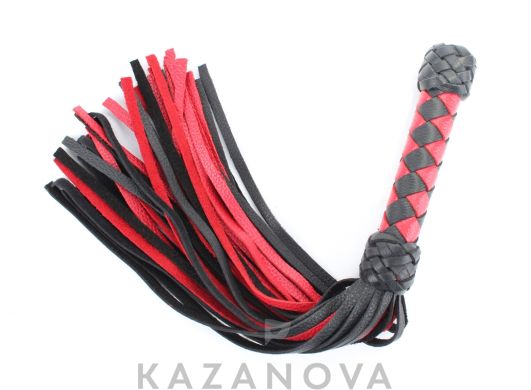 Флогер "Mix" красный с черной ручкой из натуральной кожи