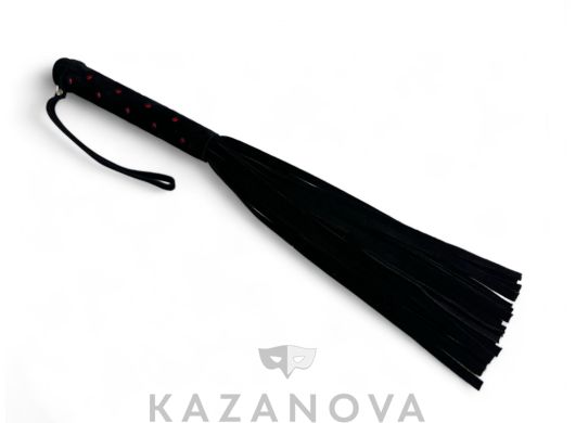 Флогер черный из натуральной кожи с велюровой рукоятью