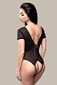 Боди плотно облегает тело подчеркивает пышную грудь и слегка её поддерживает и акцентирует внимание на талии. С доступом к интимным зонам.