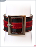 Браслет красного цвета сделан из мягкой натуральной кожи и декорирован полоской черной кожи и пряжкой из металла.