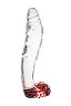 Двусторонний фаллоимитатор из стекла с выделенной головкой и венами с одной стороны и рельефными "шишечками" - с другой.