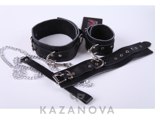 Комплект бондажный кожаный Scala (наручники, ошейник и поводок) 026