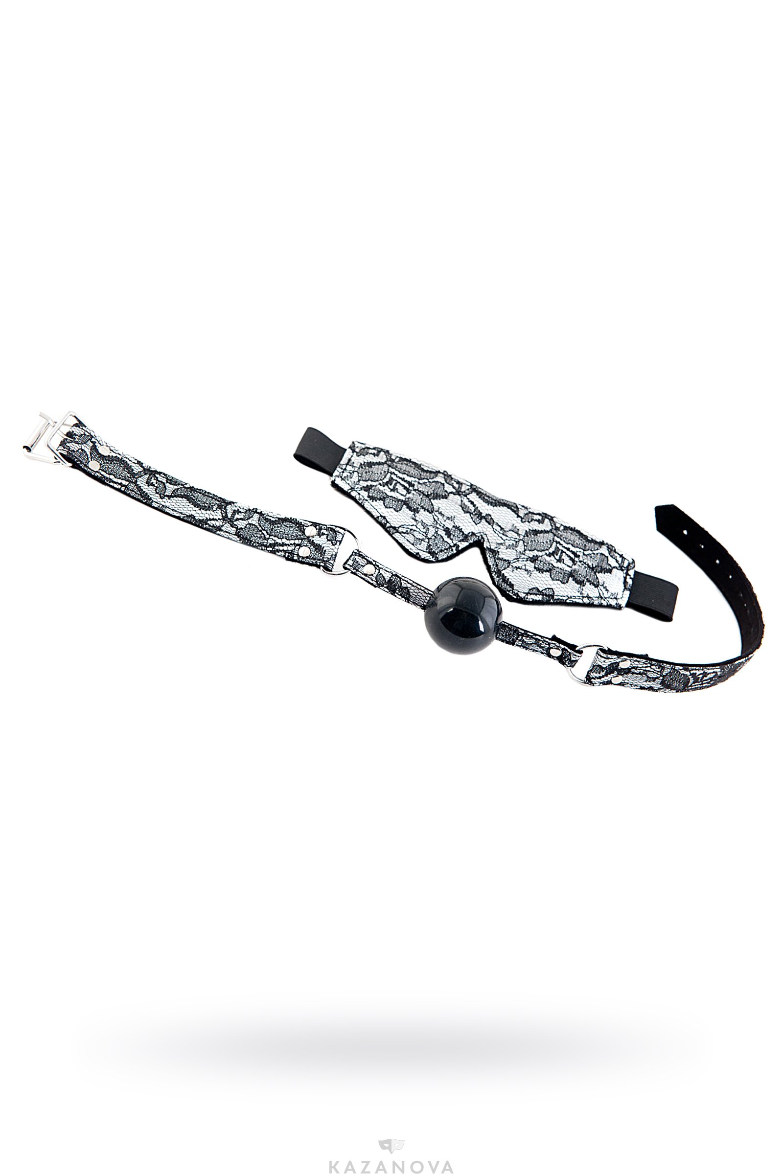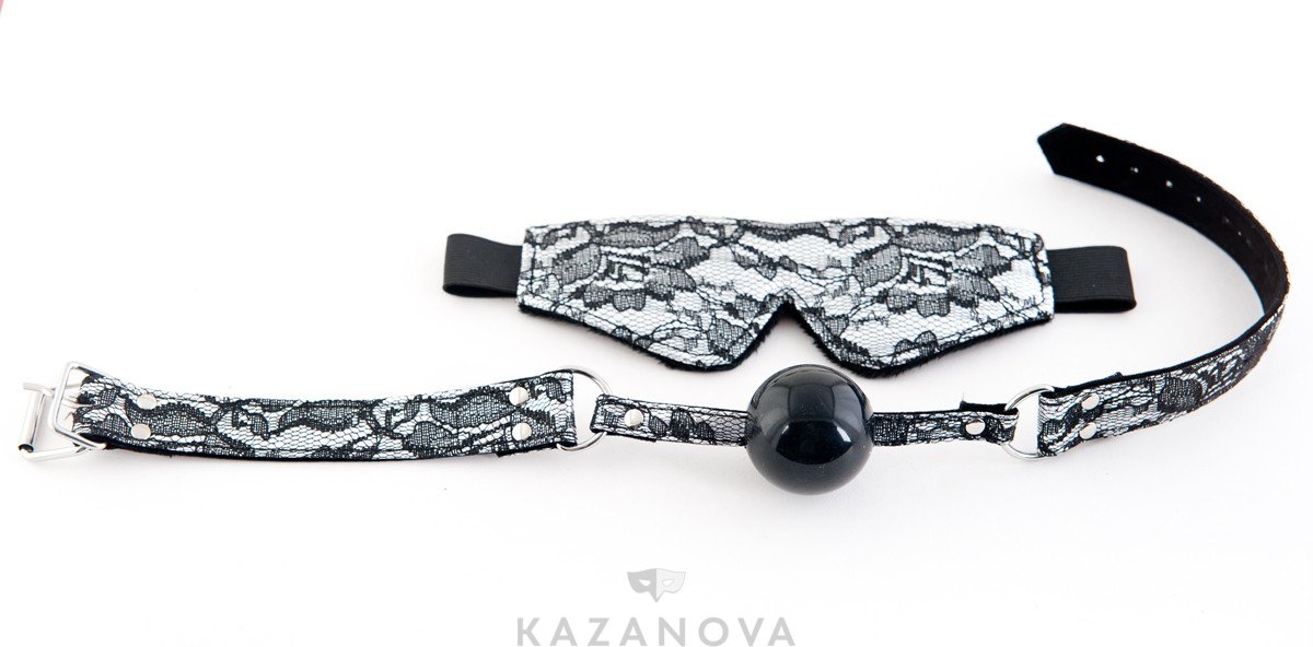 Набор: маска и кляп-шар. Изящное кружево на контрастном фоне. Более сексуального сочетания не существует. Больше ни слова и ни взгляда! Только полное подчинение!