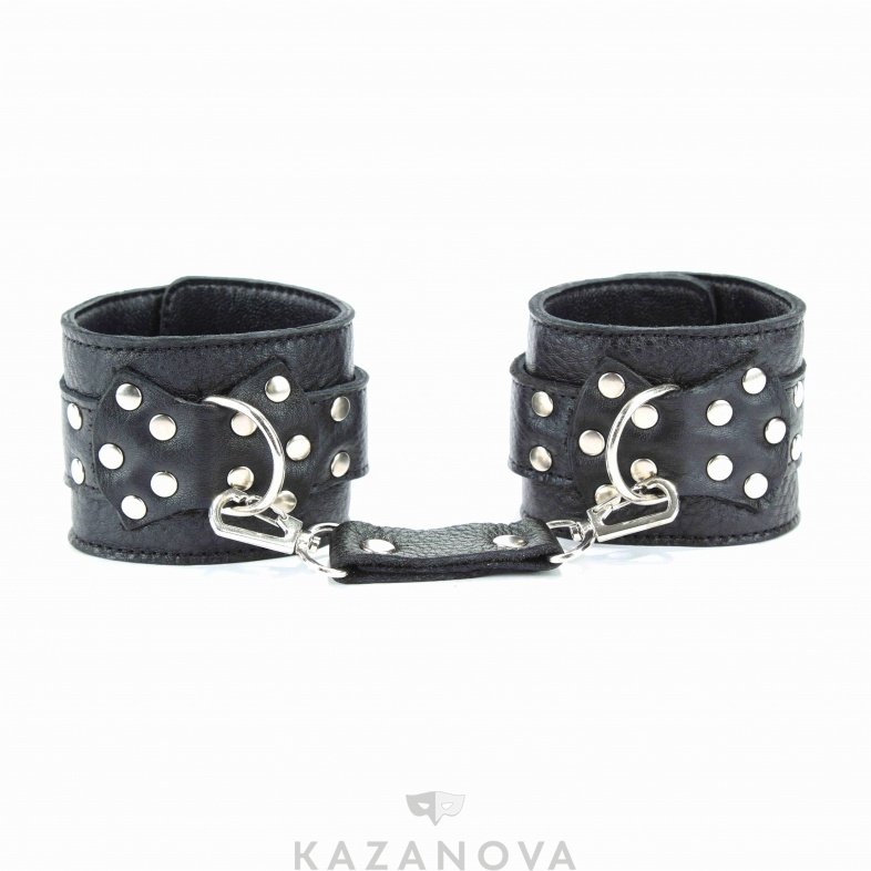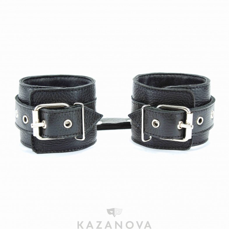 Наручники надежно фиксируются пряжками и ремнями, позволяющими выбрать нужный размер и отлично подойдут на обхват запястья от 13 до 23см. Нежный подклад из перчаточной кожи обеспечивает комфорт, кожаное соединение на карабинах фиксирует наручники вместе. Аксессуар позволяет в полной мере насладиться сексом в стиле БДСМ.