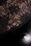 Глянцевая поверхность ткани удлиняет силуэт и скрывает недостатки фигуры. Кружевные вставки в районе декольте и спины смягчают вызывающе сексуальный образ, созданный благодаря обтягивающему материалу. В комплекте идут стринги.