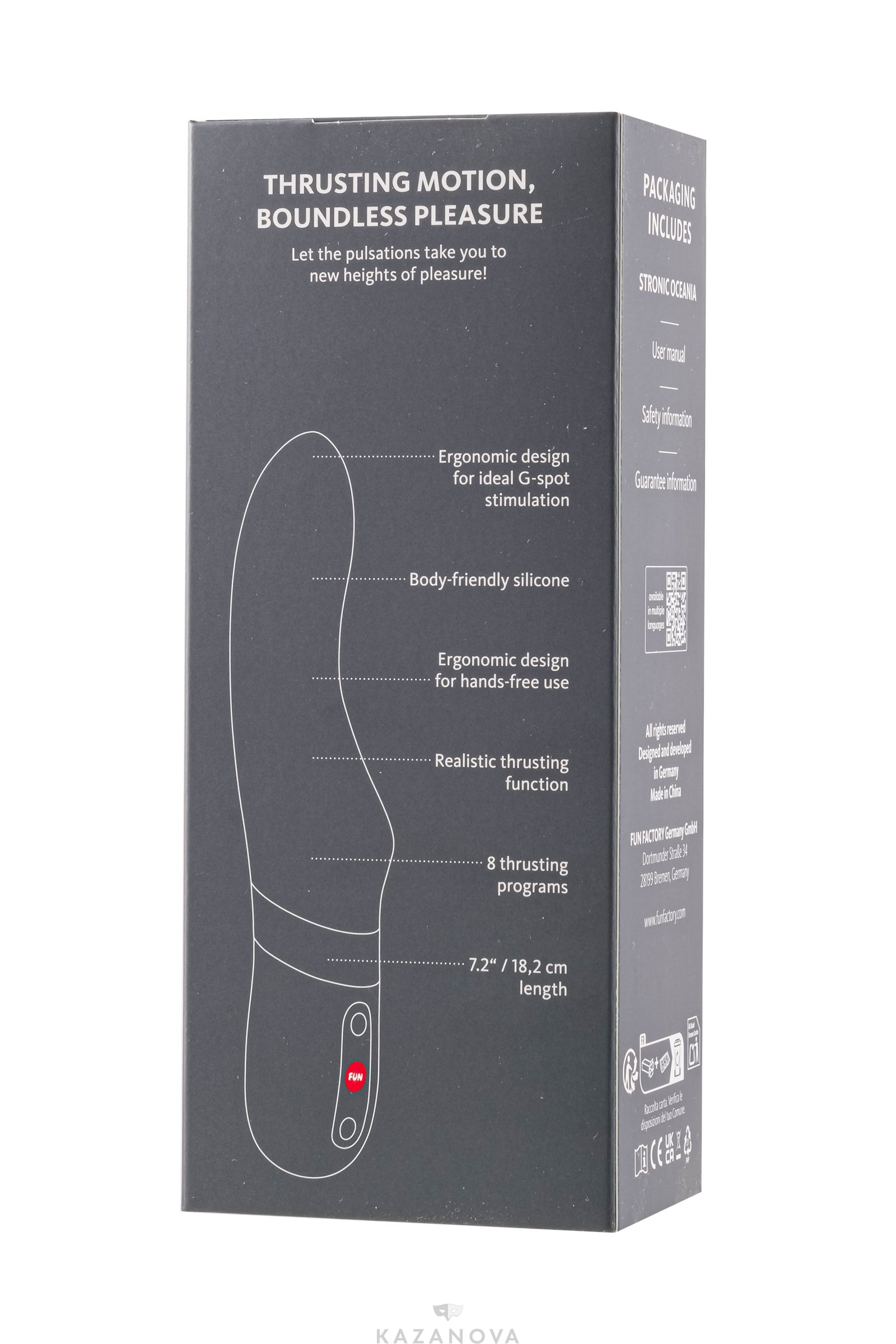 Благодаря водонепроницаемости (IPX7) и возможности зарядки через USB-C (кабель в комплект не входит), STRONIC OCEANIA всегда готов к использованию, где бы вы ни находились. Ритмичные движения вперед-назад имитируют реальную жизнь и обеспечивают реалистичные ощущения с каждым импульсом. Между тем, шелковисто-мягкий, приятный для тела силикон обеспечивает роскошные ощущения, а мощный мотор, 4 уровня скорости и 4 режима гарантируют быструю и эффективную стимуляцию. Просто нанесите немного смазки на водной основе и погрузитесь в удовольствие.