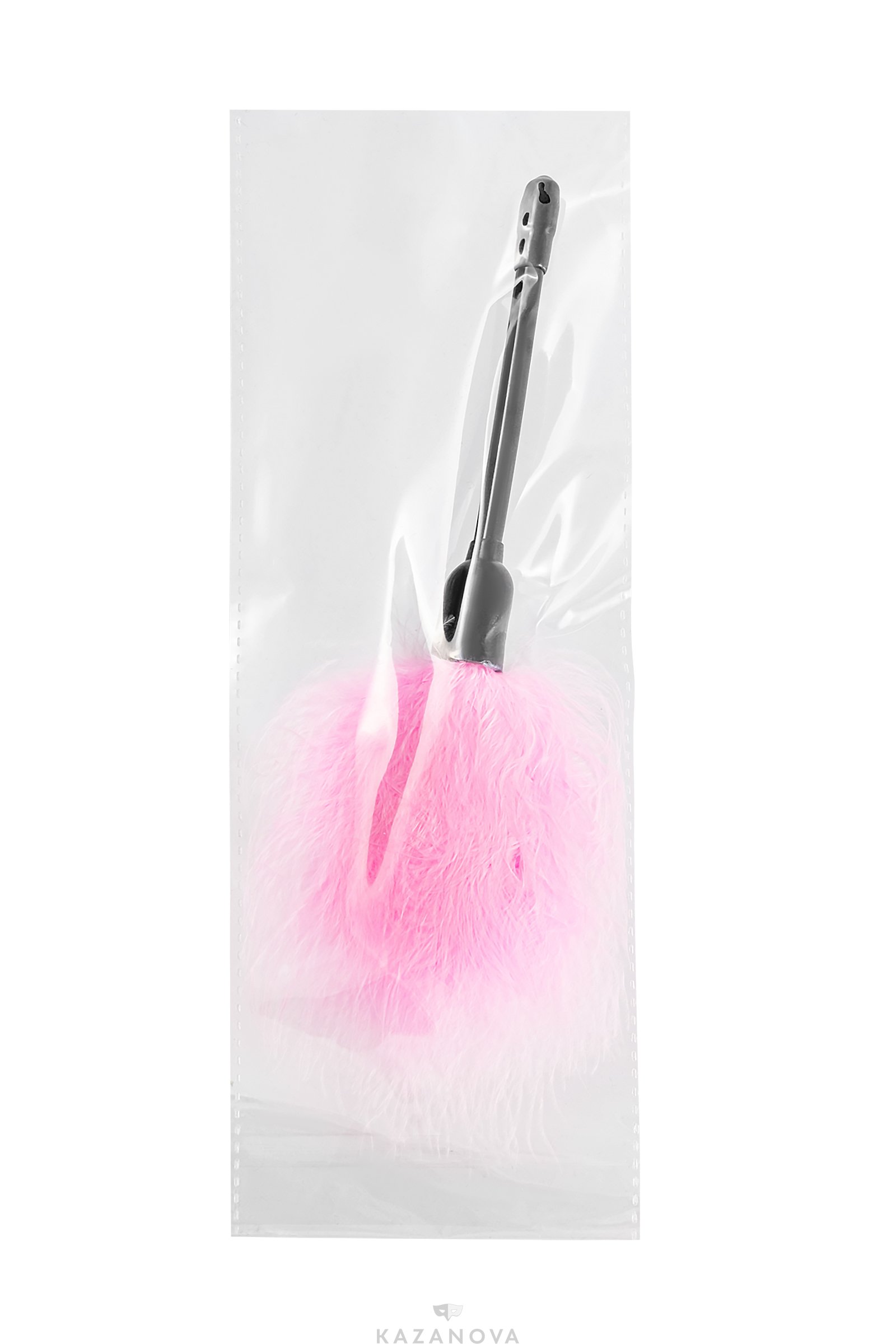 Щекоталка с пластиковой ручкой розовая