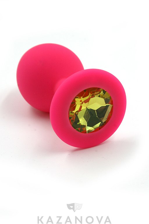 Втулка анальная Kanikule из силикона средняя розовая с желтым стразом