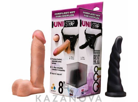 Регулируемые ремни. 2 сменные насадки в комплекте. Страпон без полости.