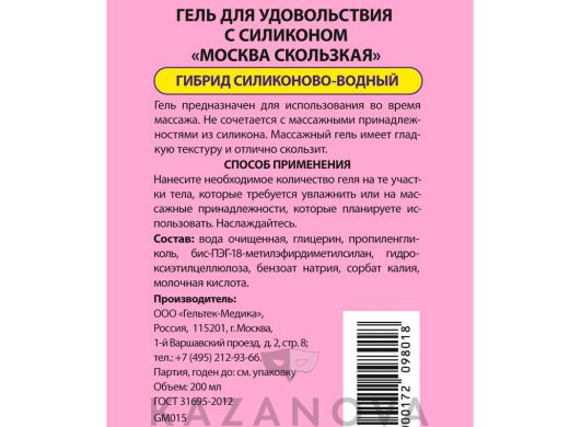 Не содержит парабенов и глицерина. Не совместим с натуральным латексом.